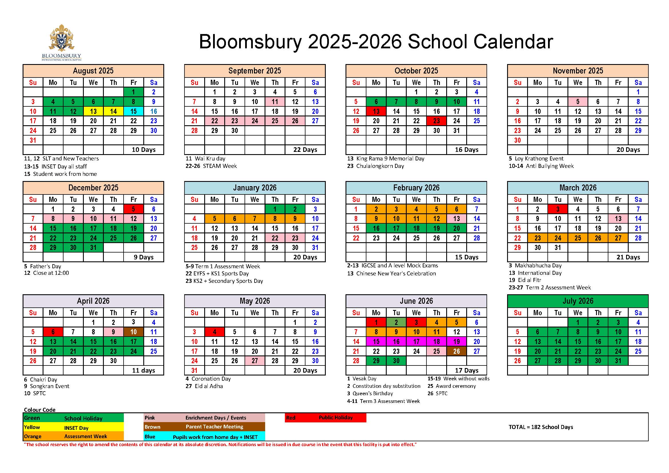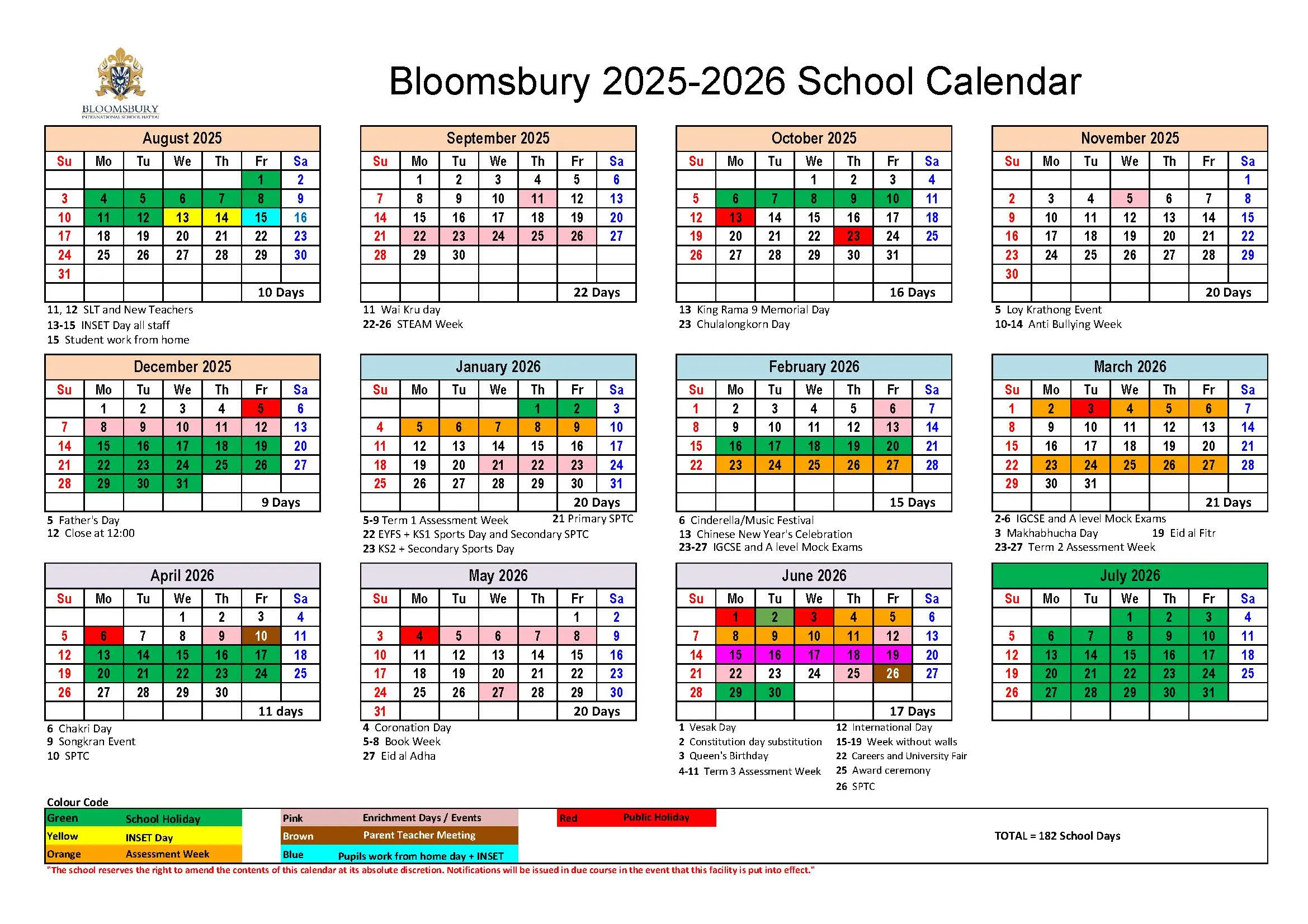 Kindly refer to the following one-page calendar to see an overview of the key dates in the school year. Please note that, should there be any changes to public holidays or other directives from the Ministry of Education and other government bodies, these may be updated.