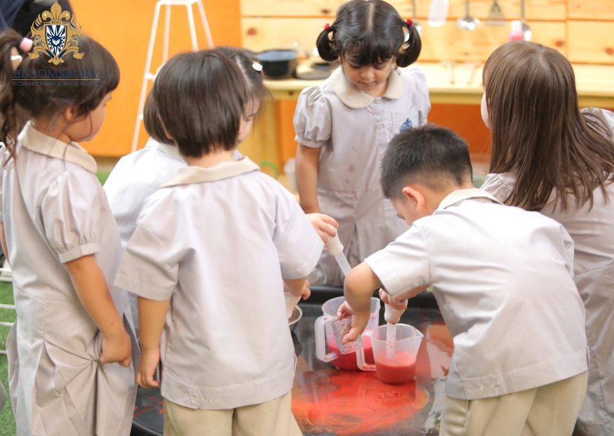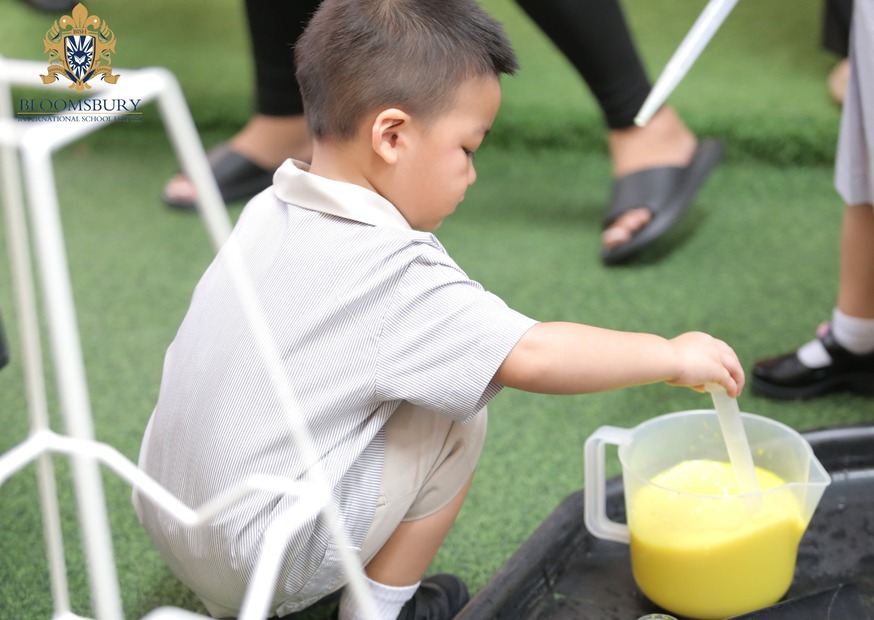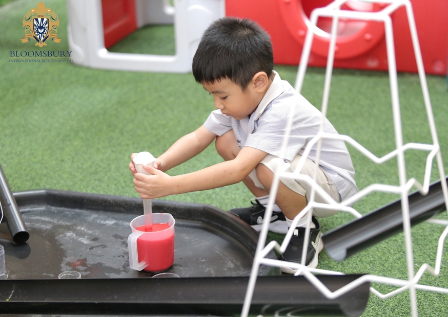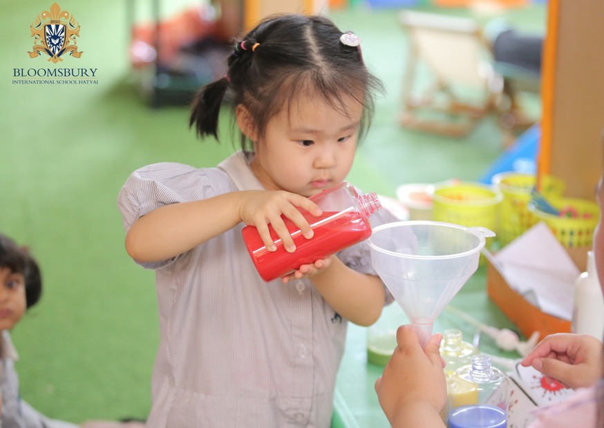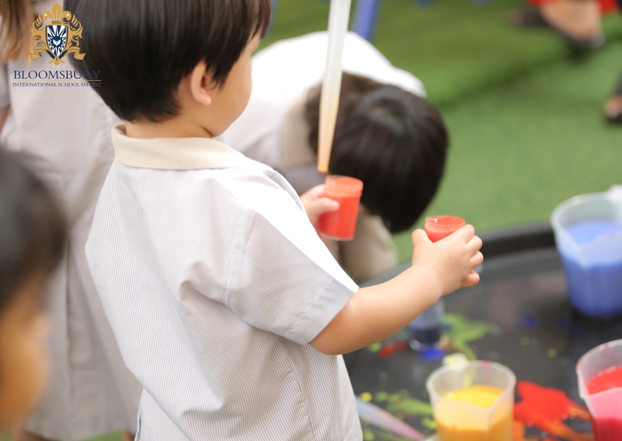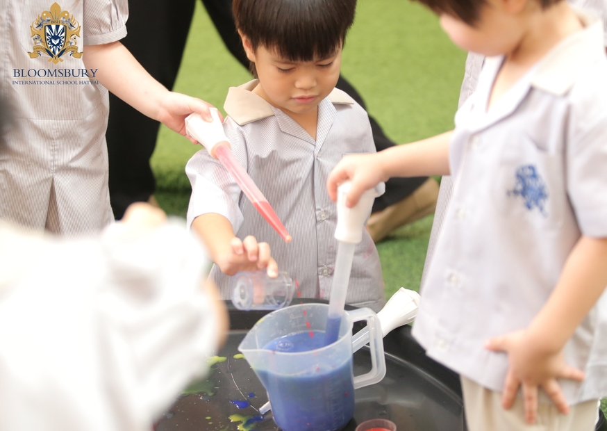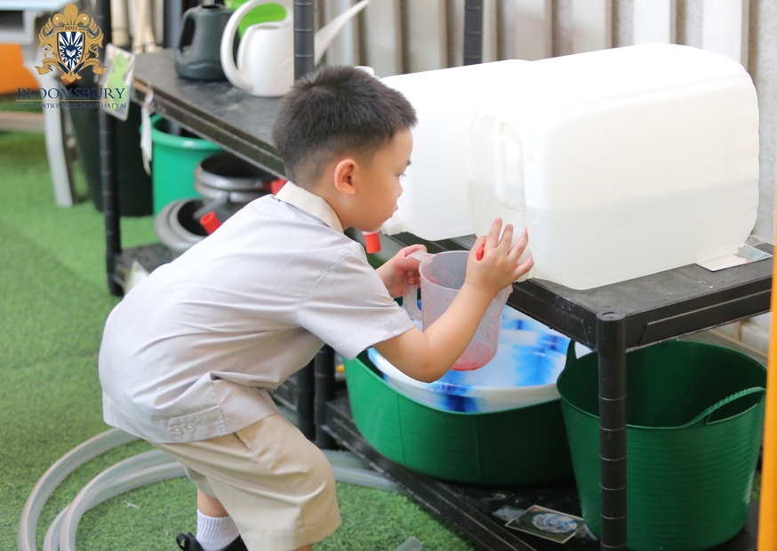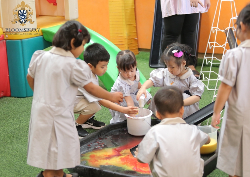 เด็กๆ ได้เรียนรู้เรื่องการผสมสีผ่านการเล่นอย่างสนุกสนาน โดยได้ลองผสมแม่สีต่างๆ เพื่อดูว่าเมื่อสีมารวมกันแล้วจะเกิดเป็นสีใหม่อะไรบ้าง ระหว่างกิจกรรม เด็กๆ ได้ฝึกทักษะทางวิทยาศาสตร์เบื้องต้น เช่น การสังเกต การคาดเดา และการทดลอง พร้อมกับฝึกกล้ามเนื้อมัดเล็กจากการบีบ เท และถ่ายของเหลวไปมา กิจกรรมนี้ยังช่วยส่งเสริมการทำงานร่วมกัน การแก้ปัญหา และพัฒนาทักษะทางภาษา เด็กๆ ได้พูดคุยแลกเปลี่ยนความคิดเห็น บอกเล่าสิ่งที่เห็น และร่วมกันค้นหาความมหัศจรรย์ของสีต่างๆ อย่างสนุกสนาน