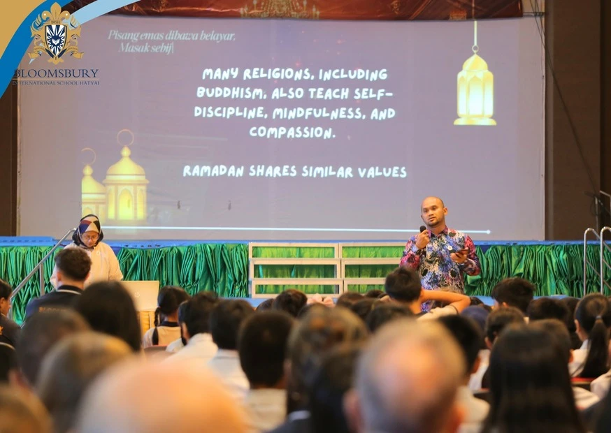 โรงเรียนนานาชาติบลูมส์เบอรี่ – หาดใหญ่ รู้สึกเป็นเกียรติอย่างยิ่งที่ได้ต้อนรับ คุณ Muhamad Danial Atif Bin Nasiren กงสุลจากสถานกงสุลใหญ่มาเลเซีย พร้อมด้วยตัวแทนจากสมาคมสตรีของสถานกงสุลที่ให้เกียรติมาให้ความรู้ใน Bloomsbury’s Ramadan Assembly โดยคุณ Danial ได้เล่าถึง ความหมายและความสำคัญของเดือนรอมฎอนอันศักดิ์สิทธิ์ ซึ่งมีความสำคัญอย่างยิ่งสำหรับชาวมุสลิมทั่วทุกมุมโลก เหล่าพลเมืองโลกตัวน้อยของเราได้เรียนรู้และเข้าใจรอมฎอนอย่างลึกซึ้งมากยิ่งขึ้น พร้อมทั้งซึมซับคุณค่าของความเคารพ การรู้จักยับยั้งชั่งใจ และความกตัญญูอีกด้วย