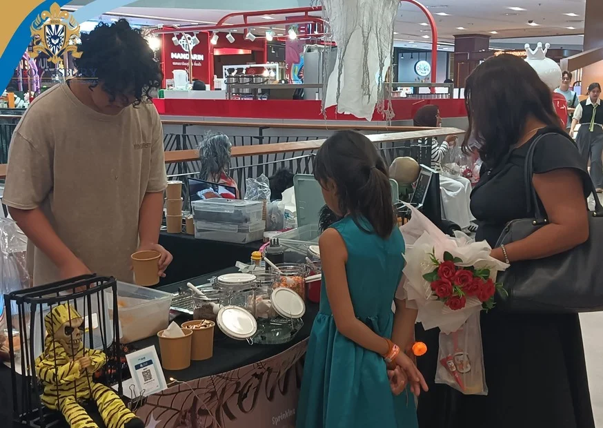 From October 24–26, our Year 11 IGCSE Enterprise students operated a real business on the 4th floor of Central Festival, selling their homemade Halloween-themed chocolate brownies as part of Central’s Nightmare District event. This hands-on experience formed an important part of their coursework. We would like to express our sincere thanks to everyone who supported our Year 11 students’ project.